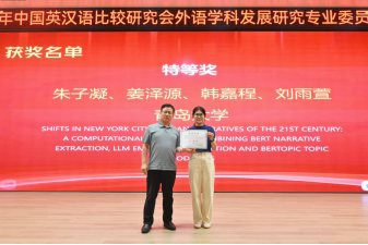 9月20日至21日,2025年中国英汉语比较研究会外语学科发展研究专业委员会年会于中国民用航空飞行学院(天府校区)成功举办,我院英语(语言大数据)创新实验班2022级学生朱子凝、姜泽源在指导教师王薇教授、布占廷副教授指导下,通过专家委员会的初选、复选,获得参加本科生创新论坛决选资格并作交流发言。朱子凝、姜泽源分别获本科生创新论坛特等奖、一等奖,王薇、布占廷获优秀指导教师奖,三上悠亚在线