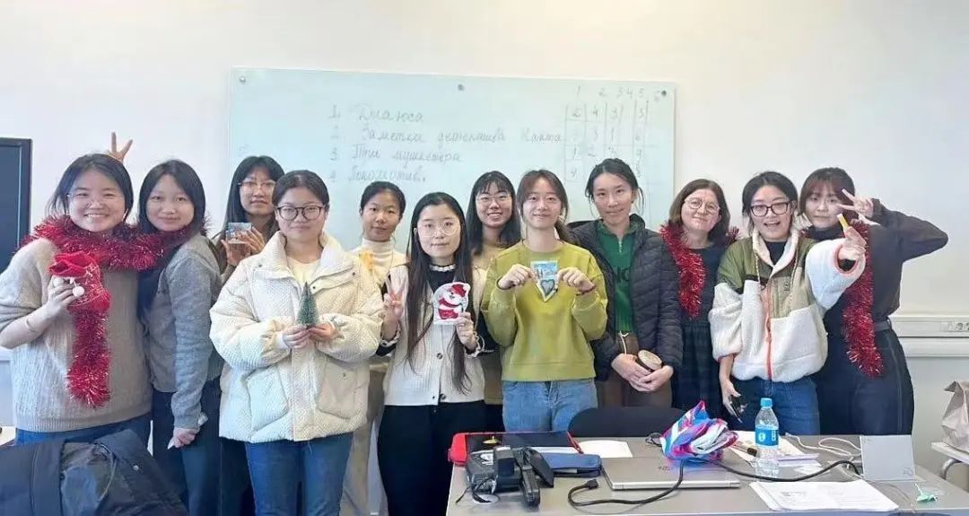 双语实验学校俄语教学实践活动、参观上合之珠国际博览中心等。这些宝贵的经历不仅让我对俄罗斯及上合组织国家的文化与社会产生了浓厚兴趣,更成为我申请国际交流项目的动力源泉。2024年6月我报名了俄罗斯远东联邦大学交流项目。我们在刘晓玲老师的指导和帮助下准备了申请材料,包括学业成绩证明、阐述个人学习意愿的动机信、健康证明材料等等。2024年9月开始,我在俄罗斯远东联邦大学区域与国际研究学院的俄语系交换学习。远东联邦大学为我们提供了多元的课程选择,涵盖外语听说读写基础课及丰富的俄罗斯文化课程。教学采用高度互动的情境教学法,这种教学方法与国内有很大差别,在学习的初期让我有些不适应。但在三上悠亚在线
