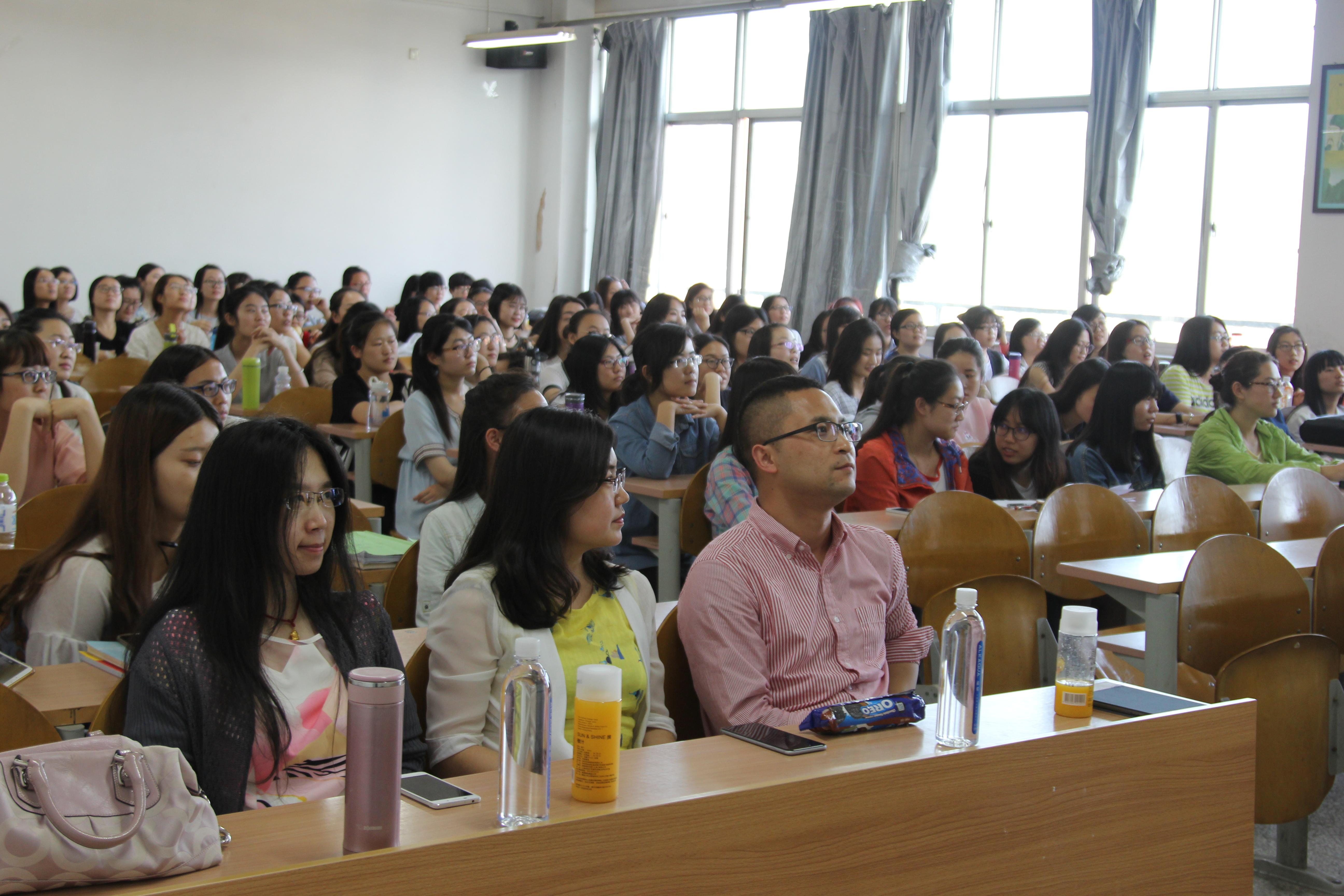 随后,六位优秀应届毕业生结合自身经历,分别讲述了他们在大学期间的学习经验和方法。王丽莎介绍有关保研的资格、材料准备等注意事项,她说保研并不是一件难事,最重要的是做好计划,每天按计划实施,切勿好高骛远,急功近利;她还解答了有出国意向同学的谜团,介绍了需准备的材料以及所具备的能力。考取北卡罗来纳大学的马晓涵向同学们推荐了提高英语能力的必备书目及“影子跟读”等有效方法。考取中国政法大学翻译方向的周怡诺告诫大家要保持一个好心态,稳扎稳打,步步为营 ,力争做到“出类拔萃”。考取中央财经大学法学专业的杨哲展示了他半学期的练习题目,用每天花费九个小时背诵的实例激励大家为目标奋力。考取北京第二外国语学院的马思敏介绍了面试经历,同时,她还提醒大家应该勇敢地突破自己,抓住机遇,才能遇见最精彩的自己!最后一位介绍经验的是考取北京师范大学的刘琳琳,她说:“年轻,应该给自己一次优秀的机会,有梦就要去追寻!”