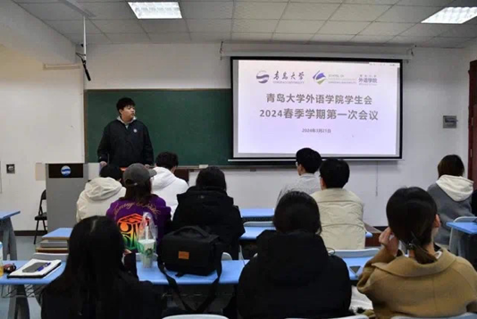 会议第一项,由外院学生会轮值主席进行了学期规划及工作部署的说明,主要围绕2024年春季学期学校及学院相关大型活动进行了初步安排。