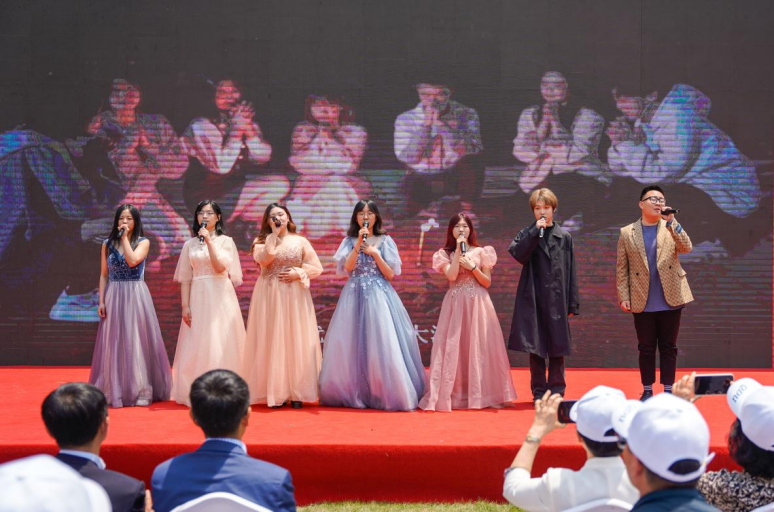 舞台上,外院的小小家属们用最稚嫩清脆的童音歌唱着爱与希望,牵动外院人的赤子之心,一同感恩母校。