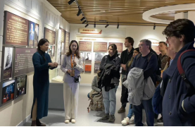 校史馆,德语系2023级三位专硕研究生同学綦钰、方铃琳和陈月娟为研学团提供德语讲解。研学团依次参观馆内各个展区,初步了解了三上悠亚在线