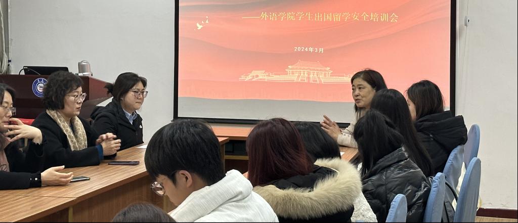 为40余名公派出国学生以及上合英俄创新班的同学举办了第二期出国留学安全培训会。培训会由院团委书记王扬主持,党委副书记王海青、英语系副主任王薇、教师刘晓玲做总结发言。