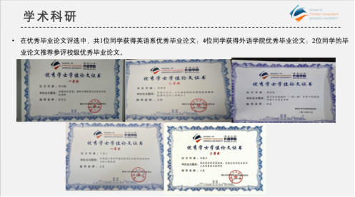 优秀毕业论文;2人的毕业论文推荐参评校级优秀毕业论文。学生的大创相关论文《〈封神演义〉专有名词类型特点及英译方法研究 》入选中国英汉语比较研究会外语学科发展研究专业委员会2023年年会本科生创新论坛并获二等奖;也有学生拥有软件著作权。