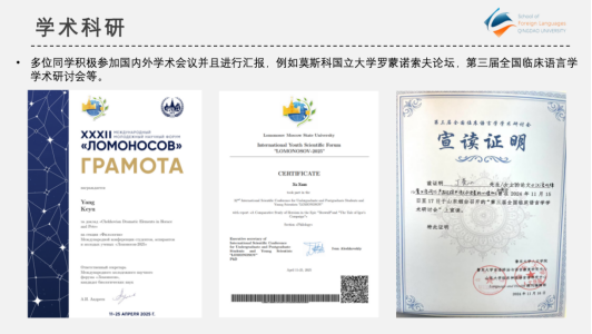 英语(上合英俄双语)创新实验班设立并招生,旨在培养“精英语、懂俄语、通国情、善交流”的复合型拔尖外语人才。经过四年时间的培养,2025届英语(上合英俄双语)创新实验班毕业生继续深造率高达73.68%,其中6人境内升学、8人境外留学;3人成功就业,去向确定率高达89.47%。作为首届英语(上合英俄双语)创新实验班,他们在专业学习、学术竞赛与课余活动中均交出了亮眼答卷,以扎实的双语能力与多元素养,展现了新时代外语人才的风采。