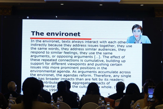 开幕式之后进行第一部分主旨报告。英国金斯顿大学Marina Lambrou教授,美国加利福尼亚大学Sara Pankenier Weld教授,中国逻辑学会文体学专业委员会副主任、南京师范大学外国语学院辛斌教授,中国逻辑学会文体学专业委员会主任、北京师范大学外文学院苗兴伟教授,中国逻辑学会文体学专业委员会副主任、清华大学外国语言文学系封宗信教授,英国诺森比亚大学Billy Clark教授依次以“Metalepsis, counterfactuality and the forked path in the French Lieutenant’s Woman: Why what does not happen in fiction is as important as what does?” “Alice through Nabokov’s looking-glass: Translation, transposition, transfiguration” “引语研究:理论与方法”“Accumulation as a stylistic device in literary discourse” “What is literature for and what are literatures valued for?”和“Pragmatics and style”为题作主旨发言。
