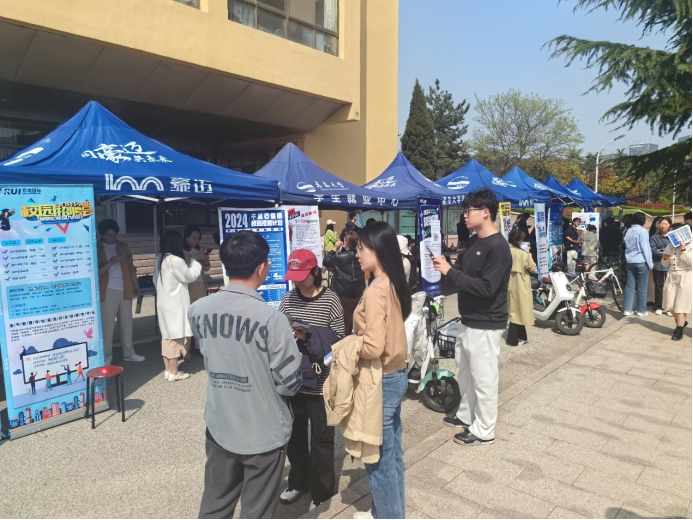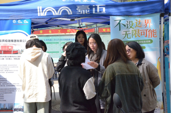 于4月18日下午在博文楼前广场举办“就”在周四 ,“语”你相约专场招聘会。本次招聘会涉及外贸、物流、翻译、教育、旅游、消防、信息技术、生产制造等多个领域,为学院毕业生提供多样化职位选择。