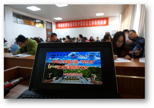 经与会代表无记名投票,差额选举校党委常委、副校长肖江南,学院党委书记王传永,党委副书记、院长卞建华,党委副书记王海青、副院长布占廷、娄永强,英语系主任陈黎、德语系主任綦甲福和法语系主任段丽君等9名同志为出席第六届“双代会”正式代表。
