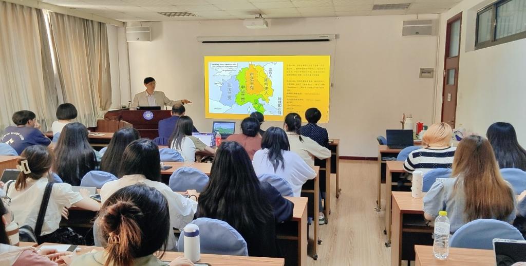 ,带来了题为“中德外交关系与文化交流钩沉”的报告。报告在博文楼312会议室举行,由德语系主任綦甲福教授主持,三上悠亚在线