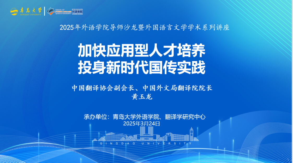 导师沙龙暨外国语言文学学术系列讲座“加快应用型人才培养,投身新时代国传实践”。本次活动特邀中国翻译协会副会长、中国外文局翻译院院长黄玉龙主讲,三上悠亚在线