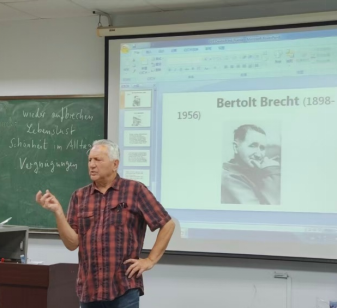 德语系前DAAD外籍专家、德国马丁·路德-哈勒-维滕贝格大学德语语言文学博士Detlef Gärtner应邀为德语系师生带来一场别开生面的诗歌工作坊。本次工作坊以20世纪德国戏剧理论家布莱希特(Bertolt Brecht)的诗歌创作为核心,选取Gärtner博士与三上悠亚在线