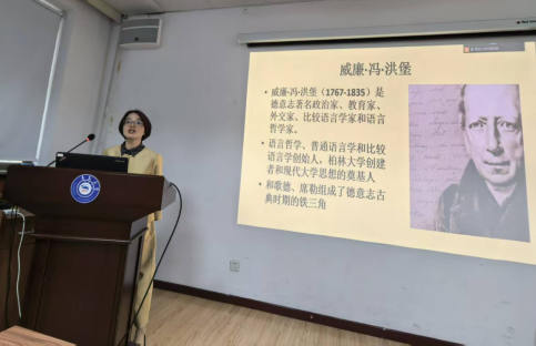 在互动环节,赵劲就现场师生提出的“如何开展翻译研究”“教研相长”及“如何平衡学术研究、行政工作和日常生活”等问题进行了解答。最后,綦甲福在总结中指出,赵劲教授结合自己的翻译实践,对洪堡“朴素与忠实”翻译原则进行了系统剖析,不仅为翻译实践提供了理论指导,对外语学科师生的翻译研究、翻译教学与实践带来新的启发,还必将推动洪堡语言哲学思想在中国的译介和研究。