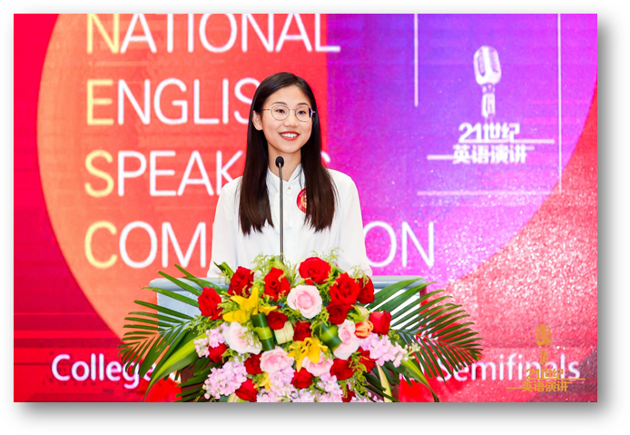 ○备赛过程有什么经验或分享?一是备赛过程中我的英语水平有了大幅提高。因为演讲是一种能力和知识的“输出”,它要求我们激发并且运用以往所积累的知识。在我们外语学习过程中,大部分时间都沉浸在读或听的“输入”过程中,这就导致我们学了很多却依然不会应用。但演讲需要的是写和说的“输出”,在这样的过程中我们可以学会整合、激活、灵活应用所学过的知识,使英语能力得到整体的提高。二是放下得失心,全心投入准备。在准备过程中,我把比赛当成一次提升英语能力的契机,不用太多去在意结果,这样才能体会到学习的乐趣、进步的快乐。三是除了英语能力、广博的知识积累同样重要。英语只是语言载体,在演讲中更为重要的是思想。通过21世纪杯定题和即兴演讲题目可以看出来,我们需要有家国情怀,关注时事热点,对文学、历史、哲学等领域也要有一定的涉猎,这样才能成为舞台上充满魅力的公众演讲者。