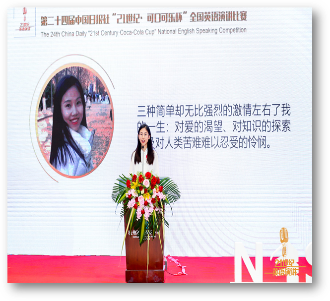 中国日报社“21世纪•可口可乐杯”全国英语演讲比赛自1996年创办以来,作为每年5月在英国伦敦举行的国际公众演讲比赛(IPSC)的中国区选拔赛,获全国总冠军者将代表中国在国际舞台上展示中国青年学子的精神风貌。 (英语系/党政办)
