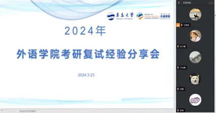 他们以自己的亲身经历为例,分享了在复试准备过程中的心得体会。吉林大学外国语言学及应用语言学专业的张莉从复试的自我介绍、专业课问答、专业相关谈论三方面展开分享,强调复试考验学生的综合素质、能力测试和外语听说能力测试,要吃透专业课重点术语和理论,练习外语流利表达。