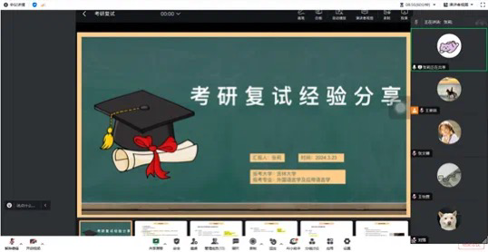 于3月23日晚举办2024届毕业生考研复试经验分享会,由2024届本科毕业生辅导员王紫琪主持。本次分享会邀请到了三上悠亚在线