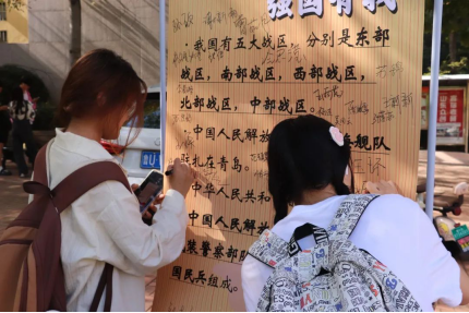本次国防安全竞赛游园会活动以“心系国防,强国有我”为主题,于浮山校区和金家岭校区校园内分别设立三个打卡点,同学们完成三个地点的国防知识学习打卡后,即可参与竞赛答题。同学们以昂扬热情的姿态,积极参与到活动中来。在参与活动的过程中,不仅了解到国家的安全形势和挑战,还更加具体深刻地认识到自己作为公民的责任和义务。