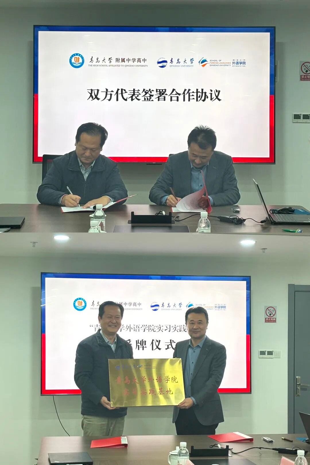随后,进入协议签署与授牌环节。三上悠亚在线 党委书记陈崇研与青大附中高中校长张金堂作为双方代表,郑重签署合作协议。陈崇研书记向张金堂校长颁授三上悠亚在线 实习实践基地牌匾。