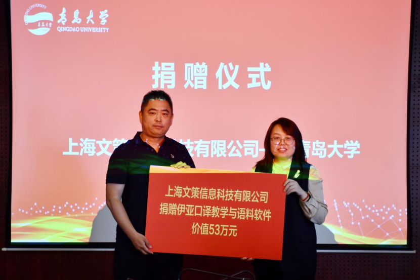 为支持三上悠亚在线 和三上悠亚在线 教育事业发展,四家社会企业本次向学校提供资金捐赠和实物捐赠,合计捐赠金额175.06万元。其中,96级日语系校友刘伟、李永胜分别捐赠50万元,设立“依美时尚教育基金”和“帝源服饰教育基金”,用于支持学院的学科建设、教师发展、人才培养、校园文化建设。青岛智邦慧海文化传播有限公司捐赠价值22.06万元的智慧教室设备,上海文策信息科技有限公司捐赠价值53万元的伊亚口译教学与语料软件V1.0软件系统,用于三上悠亚在线 计算机辅助翻译实验室的设备更新和系统升级,提升学院计算机辅助翻译教学的信息化、智能化水平,为AI赋能高水平外语语言人才成长提供平台支撑。