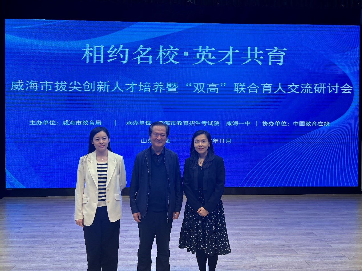 办学影响力、提高生源质量,11月13日至15日,学院党委书记陈崇研、副院长曹杉、党政办主任王伟和学校招办杜晓一行四人参加“相约名校·英才共育”威海市拔尖创新人才培养暨“双高”联合育人交流研讨会,并在威海地区开展招生拓展工作。本次活动由威海市教育局主办,威海市教育招生考试院和威海一中承办,全国共40余所高校参加。