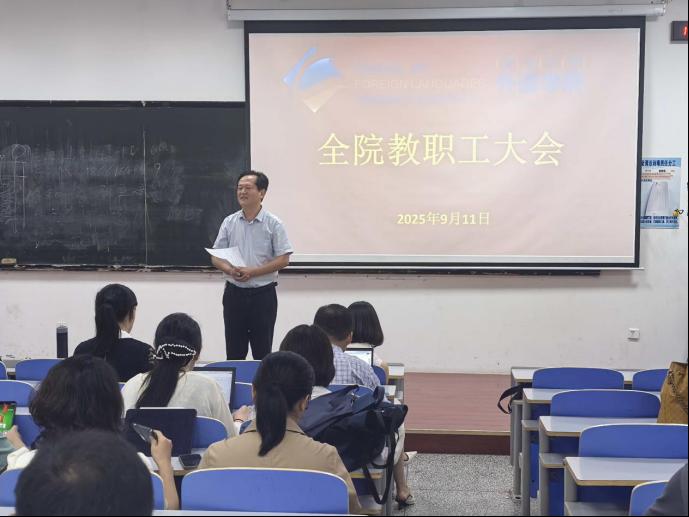 在博文楼103教室召开2025年秋季学期期初教职工大会。会议主要内容包括传达2025年暑期中层干部研讨班会议精神,总结暑假期间重点工作完成情况,部署2025年秋季学期重点工作及开学初相关工作。学院党委书记陈崇研主持会议。