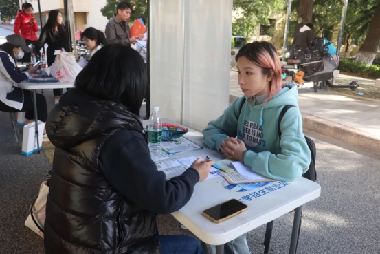 党委书记陈崇研、党委副书记于苗、各系主任、各班主任及毕业班辅导员一行深入招聘会现场开展工作。他们主动与参会企业、在场毕业生沟通交流,一方面细致调研企业核心用人需求,另一方面详细了解毕业生求职意向与实际困惑,为后续精准推进就业服务、优化人才培养方向夯实基础。