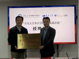 部分学生代表,青大附中高中校长张金堂、副校长高晓亮、副校长李国太、外语教研组组长梁永召及教师代表任爽出席。授牌仪式由青大附中高晓亮副校长主持。
